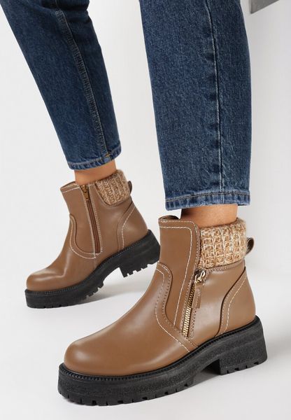 Brązowe Botki ze Sweterkową Wstawką Estea