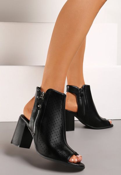 Czarne Botki bez Pięty z Ażurową Cholewką za Kostkę i Ozdobnym Suwakiem Daricasa