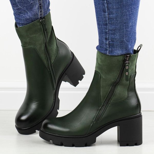 Zielone botki damskie na obcasie M.Daszyński 23108A-14