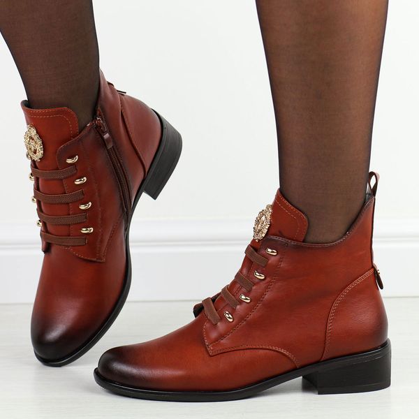 Jezzi Ażurowe Damskie Botki Na Niskim Obcasie Brązowe
