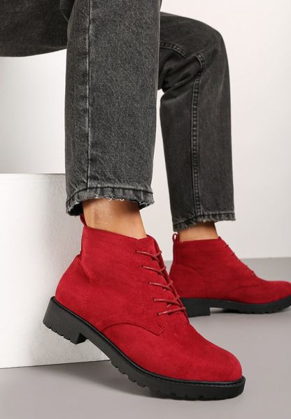 Bordowe Sznurowane Botki na Płaskiej Podeszwie Mazira