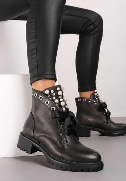 Srebrne Botki z Ozdobnymi Sznurówkami Perłami i Cyrkoniami Jovilda
