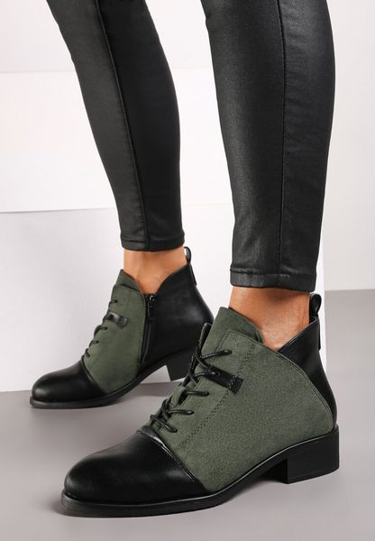 Zielone Sznurowane Botki na Płaskiej Podeszwie Ozdobione Rivianne