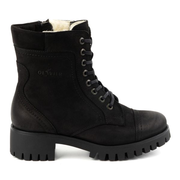 Olivier Botki skórzane damskie trzewiki ocieplane zimowe 272BB czarne