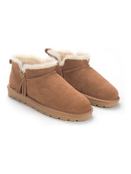 – zapięcie: bez- praktyczna szlufka ułatwiająca zakładanie- noski: zaokrąglone- wyściółka: ogrzewająca skóra owcza i materiał tekstylny- skórzana wkładka: tak- detale: frędzle- podeszwa: antypoślizgowa