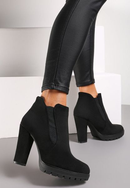 Czarne Botki na Niskiej Platformie i Słupku Firmina