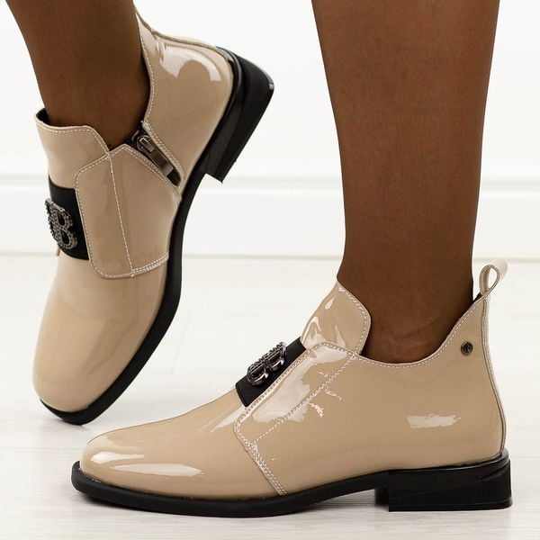Beżowe lakierowane skórzane botki damskie Filippo Dbt4763/25