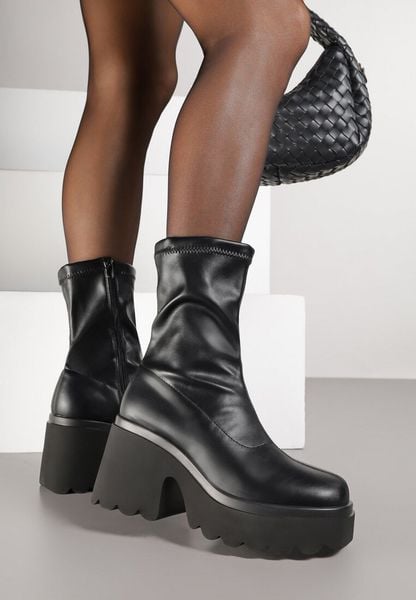 Czarne Ocieplane Botki Vices na Słupku i Platformie z Przylegającą Cholewką Faleina