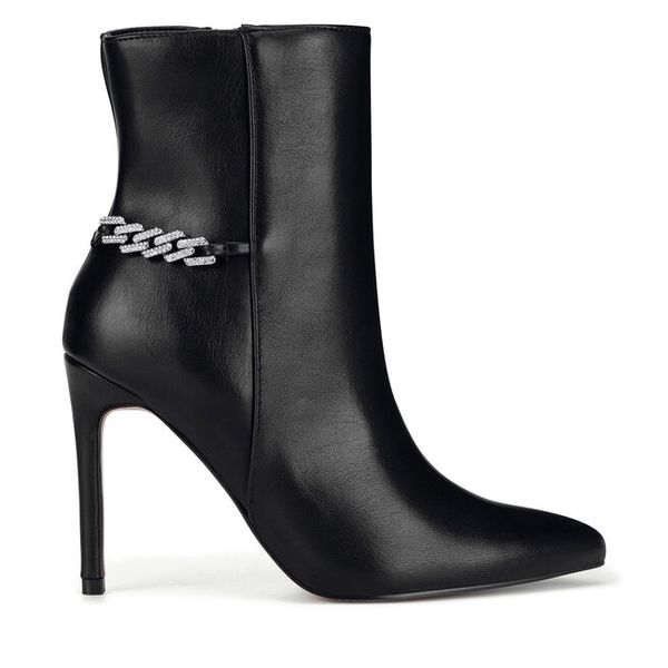 Czarne Botki Typu Trzewiki Vices na Słupku Ozdobione Lakierowanymi Elementami Adenella