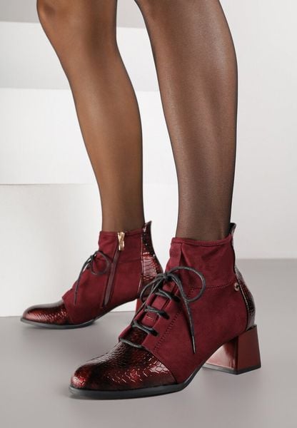 Bordowe Botki Trzewiki Vices na Obcasie z Lakierowanymi Wstawkami Adanella
