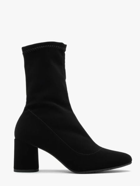 Czarne botki z elastyczną cholewką na okrągłym klocku z linii RYŁKO.Model wykonany z syntetycznego nubuku.Elastyczna cholewka dopasowuje się do nogi.Całe wnętrze obuwia (podszewka i wyściółka) wykonane ze skóry naturalnej.Model nieocieplony.Słupek oblekany o wysokości 6,5 cm.Nosek okrągły.R. SILENCE – wyciszenie obcasa, uzyskane dzięki zastosowaniu nowego technologicznie fleka, tłumiącego drgania podczas chodzenia.