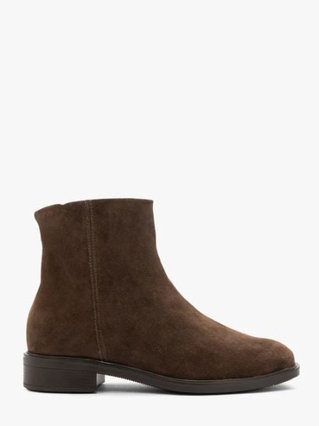 Ciemnobrązowe klasyczne botki ze skóry welurowej