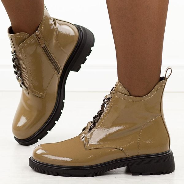 Beżowe lakierowane botki damskie Jezzi 2501-8