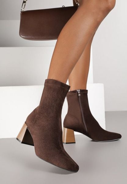 Brązowe Botki Vices na Obcasie o Geometrycznym Kształcie z Elastyczną Cholewką Falurea