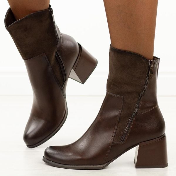 Brązowe botki damskie na obcasie M.Daszyński Sa269-1