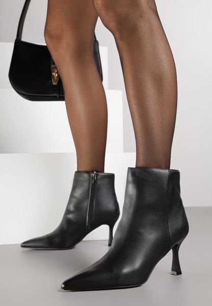 Czarne Botki Vices na Szpilce ze Skóry Ekologicznej ze Szpiczastym Noskiem Reyi