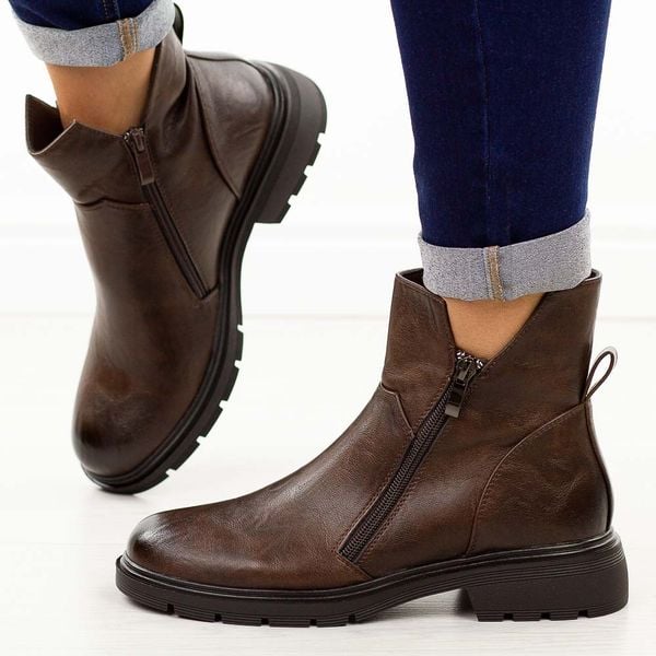 Brązowe botki damskieto stylowe i praktyczne obuwie stworzone na chłodną jesień oraz zimę. Cholewka wykonana jest z wysokiej jakości materiału skóropodobnego, co zapewnia elegancki wygląd i trwałość. Buty są wygodnie zapinane na suwak, a dodatkowo posiadają drugi, ozdobny suwak w zewnętrznej części cholewki, który dodaje całości nowoczesnego charakteru. Klasyczny okrągły nosek gwarantuje komfort noszenia, a wnętrze […]