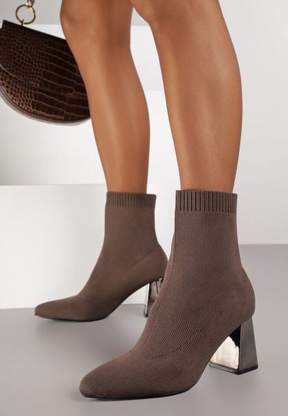 Brązowe Botki Vices ze Skarpetkową Cholewką na Metalicznym Słupku Wadvira
