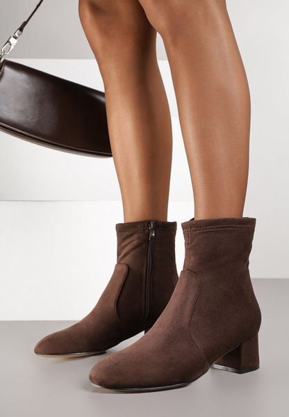 Ciemnobrązowe Botki Vices na Obcasie z Dopasowaną Cholewką Arinde