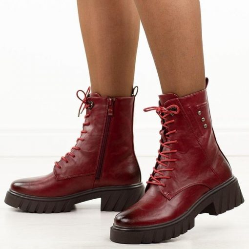 Bordowe zimowe botki damskie na traperze M.Daszyński 2502-4