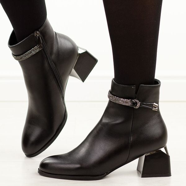 Czarne botki damskie na obcasie Potocki 12290