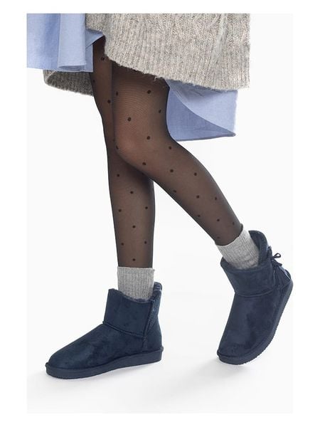 – wodoodporny materiał wierzchni o wyglądzie skóry welurowej („Microsuede”)- zapięcie: bez- noski: zaokrąglone- detale: ozdobne i formujące szwy- zapiętki: wzmocnione- wyściółka: ciepła- podeszwa: antypoślizgowa