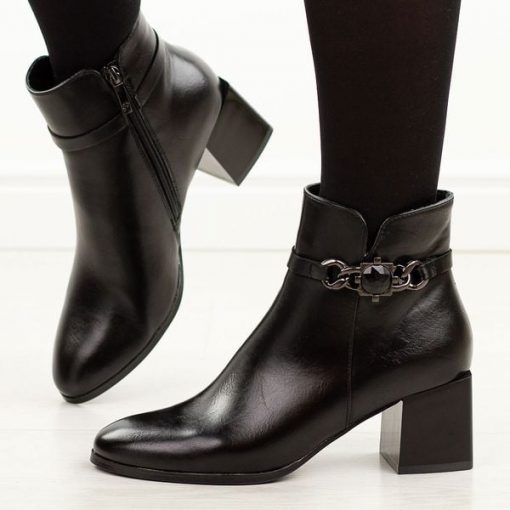 Czarne botki damskie na obcasieto stylowe i praktyczne obuwie na chłodną jesień i zimę. Ich cholewka została wykonana z wysokiej jakości materiału skóropodobnego, który doskonale imituje skórę naturalną, jednocześnie gwarantując trwałość i łatwość w pielęgnacji. Dodatkowym atutem tego modelu jest subtelna ozdoba umieszczona z boku cholewki, która nadaje butom elegancki i nowoczesny charakter. Buty są zapinane […]