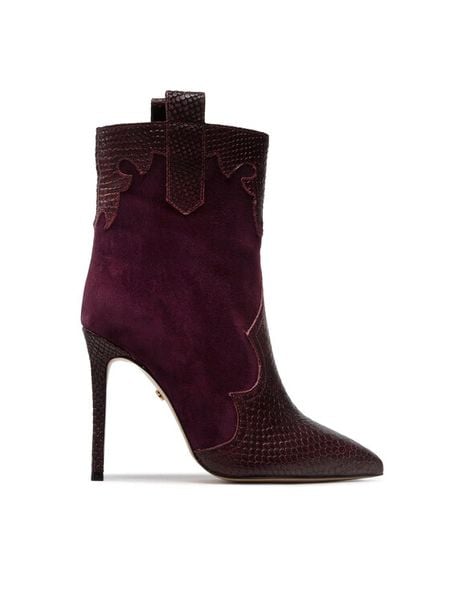 Fioletowe Welurowe Botki na Geometrycznej Szpilce z Paseczkiem i Cyrkoniami Peggiess