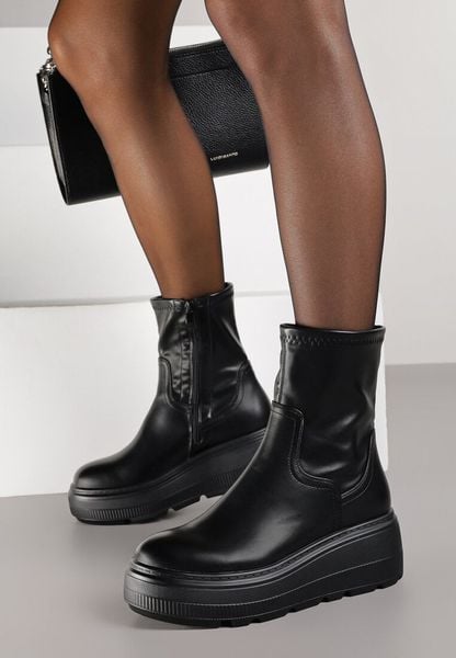 Czarne Botki na Platformie w Stylu Cyber Fisatte