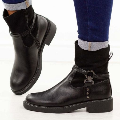 Czarne botki damskie na płaskim obcasieto idealny wybór na chłodną jesień i zimę, łączący nowoczesny design z funkcjonalnością i komfortem. Wykonane z materiału przypominającego skórę, te botki cechują się eleganckim wyglądem i wysoką trwałością. Cholewka jest zapinana na suwak, co ułatwia ich zakładanie i zdejmowanie, a ozdoba umieszczona w bocznej części cholewki przyciąga wzrok, nadając […]