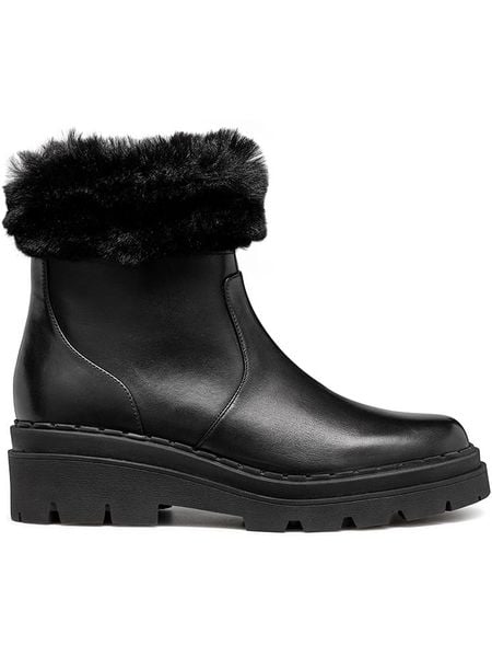 – zapięcie: suwak- noski: zaokrąglone- noski i zapiętki: wzmocnione- detale: obszycie ze sztucznego futerka- forma obcasa: blokowy- podeszwa: antypoślizgowa