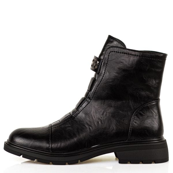 Czarne botki damskieStylowe i wygodne botki damskie na płaskiej podeszwie wykonane z wysokiej jakości eko skóry to idealny wybór na sezon jesienno-zimowy. Model posiada zamek błyskawiczny, który ułatwia zakładanie, oraz delikatną ozdobę z przodu buta, dodającą elegancji i kobiecego charakteru. Buty są ocieplane, dzięki czemu zapewniają komfort cieplny w chłodniejsze dni, a okrągły nosek gwarantuje wygodę […]