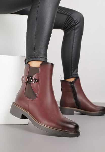 Bordowe Botki Typu Sztyblety z Klamerką i Ozdobnym Paskiem przy Cholewce Hanice