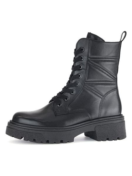 – zapięcie: sznurowanie z bocznym suwakiem- praktyczna szlufka ułatwiająca zakładanie – noski: zaokrąglone- noski i zapiętki: wzmocnione- powierzchnia; wzorzysta – forma obcasa: blokowy- podeszwa: antypoślizgowa