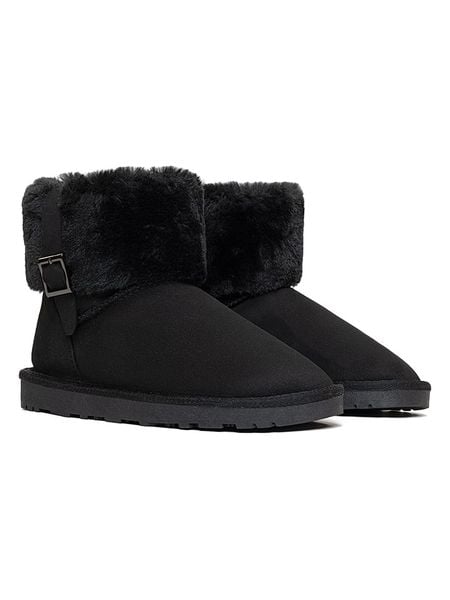 – wodoodporny materiał wierzchni o wyglądzie skóry welurowej („Microsuede”)- zapięcie: bez- noski: zaokrąglone- detale: ozdobne i formujące szwy, ozdobna klamra, wstawka ze sztucznego futerka – zapiętki: wzmocnione- wyściółka: ciepła- podeszwa: antypoślizgowa- kolor producenta: Black