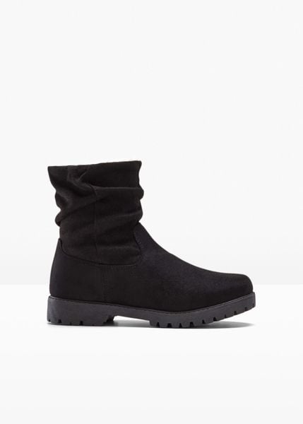 Casualowe botki na profilowanej podeszwie. Z zamkiem, ciepłą podszewką tekstylną i profilowaną podeszwą. Dekoracyjnie marszczona cholewka.