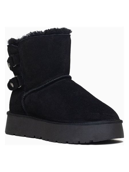 – skóra welurowa- zapięcie: bez- noski: zaokrąglone- noski i zapiętki: wzmocnione- detale: ozdobny pasek- wyściółka: ogrzewająca wełna- forma obcasa: platforma- podeszwa: antypoślizgowa