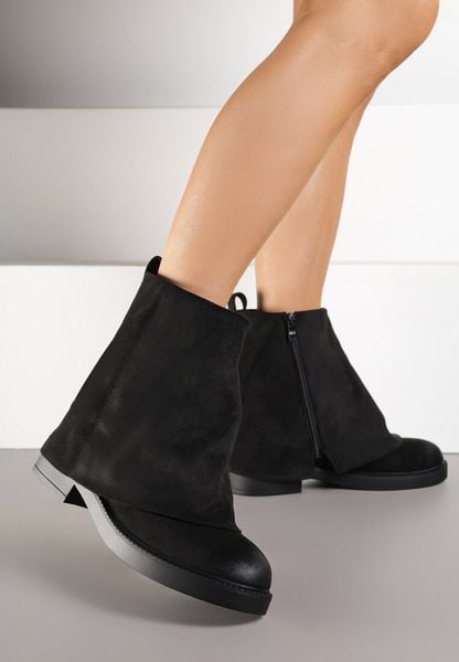 Czarne Botki z Imitacji Zamszu z Cholewką w Stylu Nogawki Rilavine