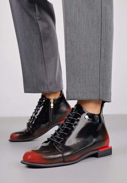 Czarno-Czerwone Botki Trzewiki Lakierowane Vices Jovilie