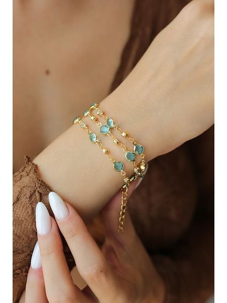 – materiał: mosiądz- powłoka: złoto- zapięcie: karabińczyk- regulacja długości: tak- rodzaj kamienia: kryształ- kolor kamienia: turkusowyWskazówka: Zdjęcie produktu w powiększeniu.