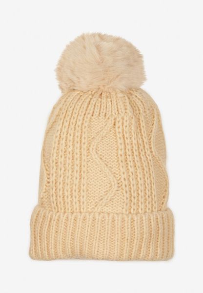 Beżowa Czapka Ozdobiona Pomponem i Tłoczeniem Tamlin