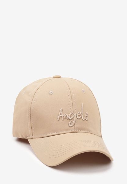 Jasnobeżowa Czapka Bawełniana z Daszkiem i Haftowanym Napisem Volaya