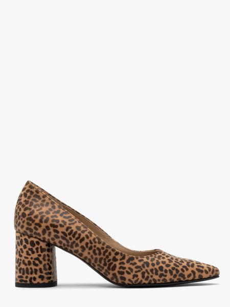 Brązowe Czółenka na Słupku w Klasycznym Stylu Ozdobione Wzorem w Panterkę Zeianae