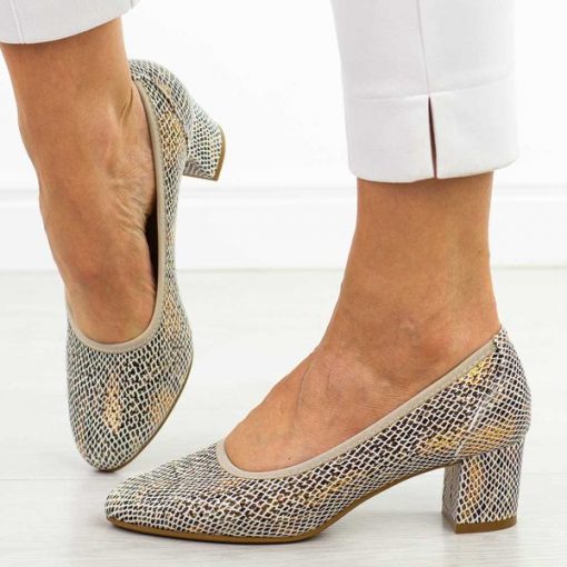 Beżowe wąż ażurowe czółenka damskie na obcasie M.Daszyński Sa212-9
