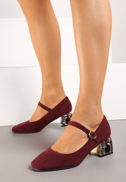 Bordowe Czółenka Vices na Obcasie z Biżuteryjnym Zdobieniem ze Sprzączką i Skórzaną Wkładką Aletan