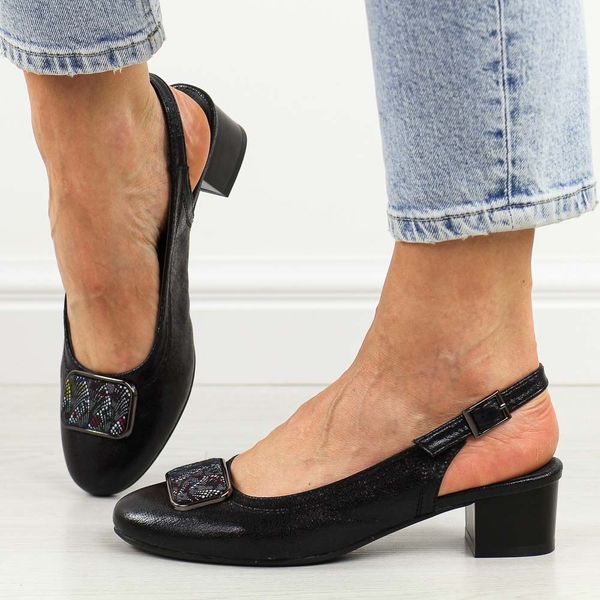Czarne czółenka damskie na obcasie M.Daszyński Sa210-11