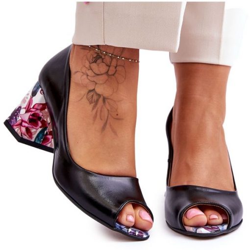 Skórzane Czółenka Z Ozdobnym Obcasem Lewski Shoes 2608/K Czarne