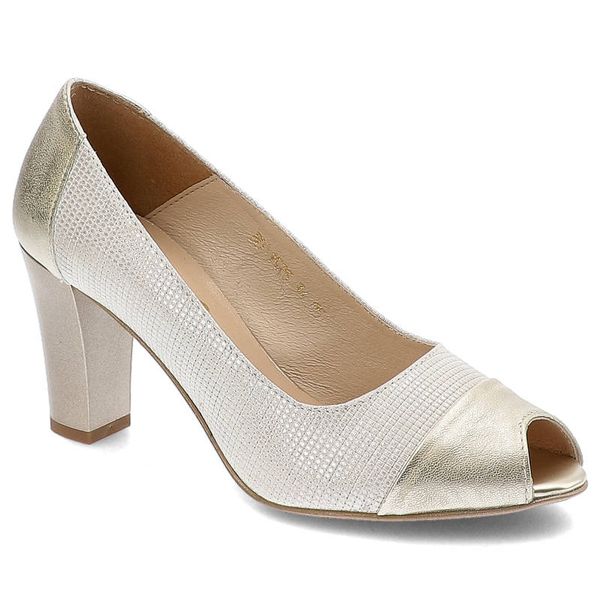 Skórzane Czółenka Na Słupku Maciejka K6816-25 Złote złoty
