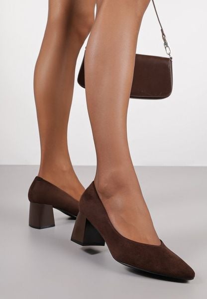 Brązowe Czółenka Vices na Słupku z Wkładką ze Skóry Naturalnej i Klamrą Apanelle