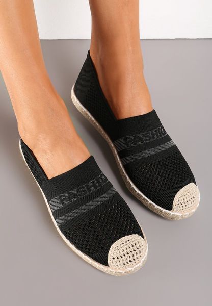 Czarne Espadryle z Plecioną Cholewką przed Kostkę Mokosa